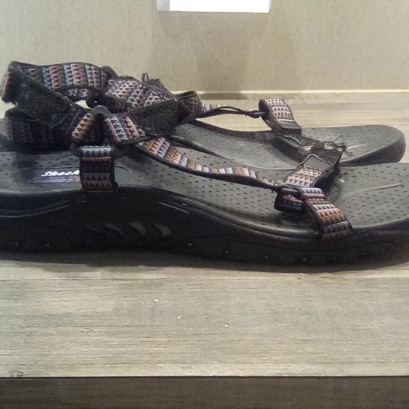Skechers outdoor Slip-on flat flip Flap casual flat Comfortable Walking Man Shoes is pre-owned condition is in good condition. the size is 11 and the color is black. Men Skechers...