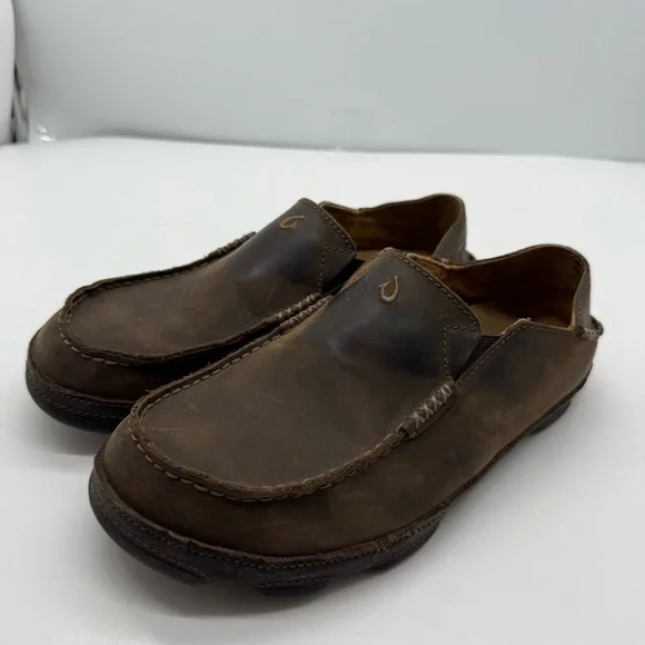 Olukai Moloa Mens 8.5 Slip On Shoes Loafers Leather Slippers Casual Boat Comfort