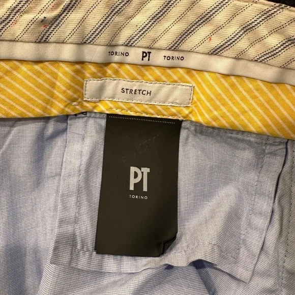 Brand new PT Torino, formerly know as PT01, blue denim cotton /elastane dress pants, size 42, inseam 36 . Flat front,four pockets.Slim fit.Nice navy blue color with some structure to the material, 2% elastane makes them stretch and comfortable to wear.Mase in Italy. Originally $345