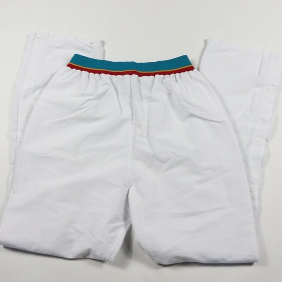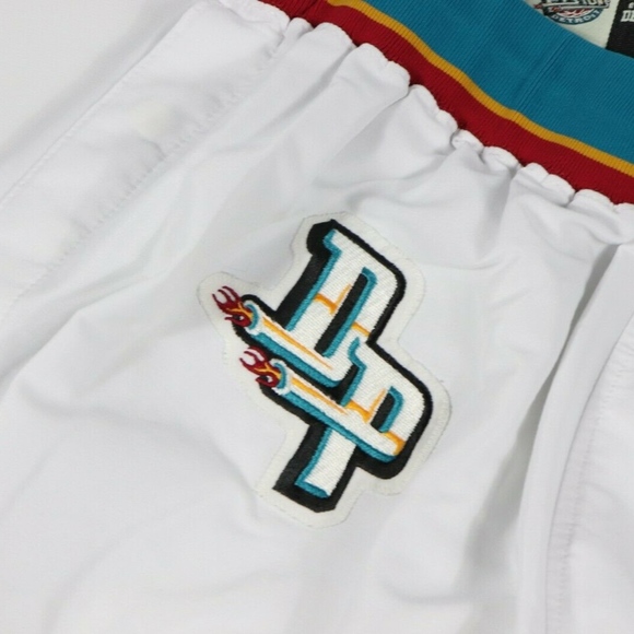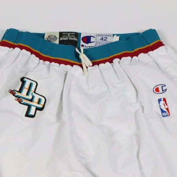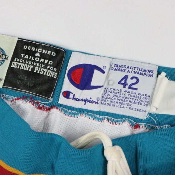 Vintage 1996-1997 Champion Detroit Pistons Basketball Tearaway PantsPantsThese are player issued pants purchased from a recent sale that the Detroit Pistons put on to the public.Small cut on the bottom leftThe size is 42Measurements are:38 inch inseam54 inch overall length15.5 inch waist lying flatWhite, Red, Yellow and TealPolyesterFrom the 1996-1997 SeasonCheck out my other items in my store!ChampionBin