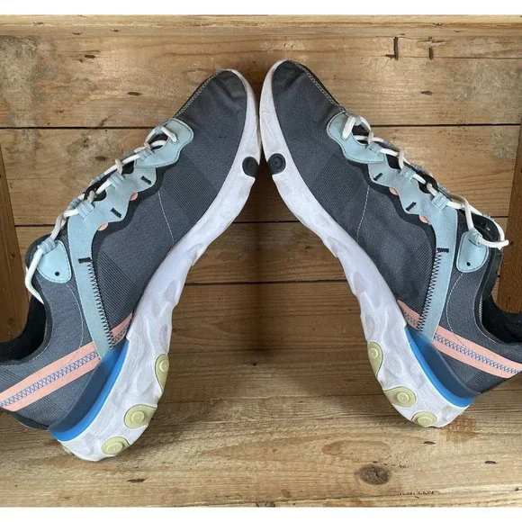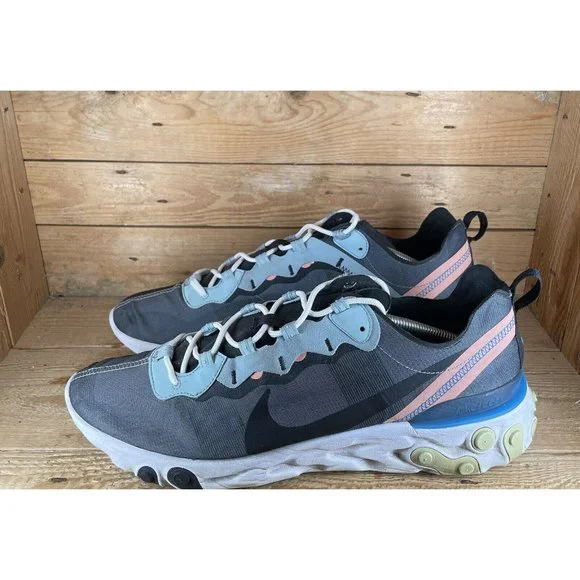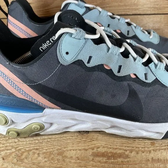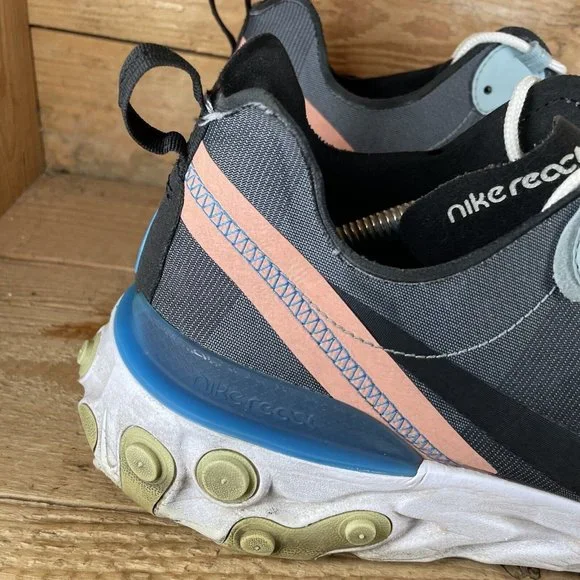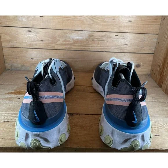 Some heel drag on the right shoe.Overall in good condition.Nike React Element 55 Ocean Cube, Black & Pink CD7627-001 Size 14.