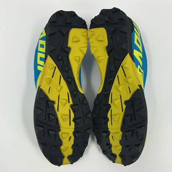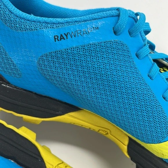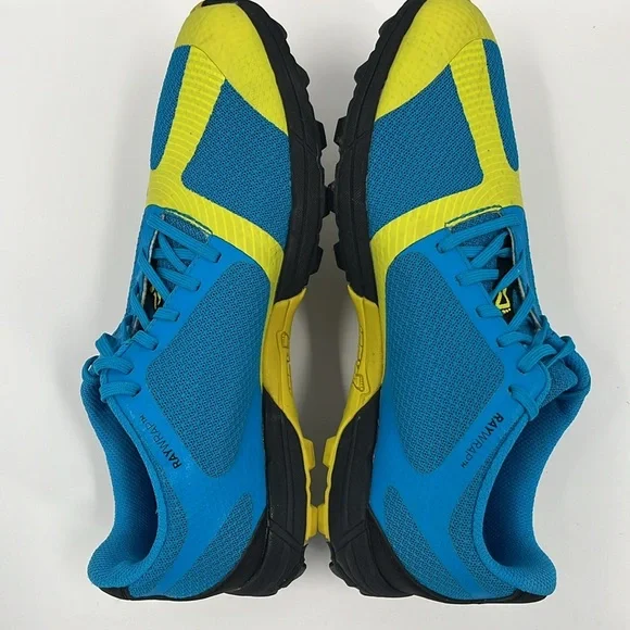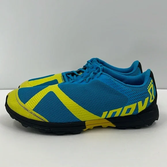 Inov-8 Terraclaw 220 Trail Runner with RayWrapLightweight mesh upper with lace-up vamp for comfort and supportDiagonally sewn tongue for protection from debrisTriangular lug design to release gravel and gritSticky rubber outsole for traction on a variety of surfacesFrom single track to steep descents, the Terraclaw performs on the widest range of trails imaginable. Our unique lug design releases debris and grit like no other, delivering optimum grip with every foot strike. The higher mileage version of the Terraclaw range, this shoe delivers extra protection and comfort courtesy of a full rand higher stack height.Lace UpBlue/Lime Green and BlackTerrific condition, like new with no wear. Unisex Size: Woman’s 10.5, Men’s 9