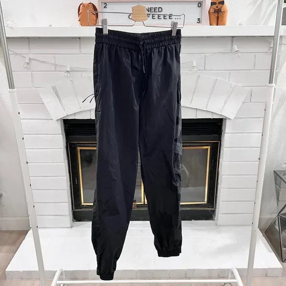 Preloved. Condition 9/10.Kith Sport Black Logo Nylon Windbreaker Jogger Track Pants.Size XS Men.Adjustable Ankle.Slight Misshapen on Waist Drawstring Tip.Zippered Pockets.Elastic Waistband.RARE VINTAGE FIND!FB IG BensUrbanBargain
