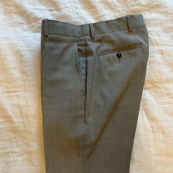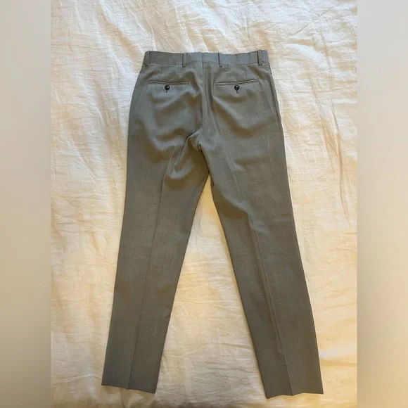 Ted Baker London slim straight slacks in beige/grey. Barely worn, no stains, no rips, basically perfect condition. Fit is tight but comfortable at waist and crotch, straight and loose at leg. Color is hard to see in photos but has a slight beigey tone.