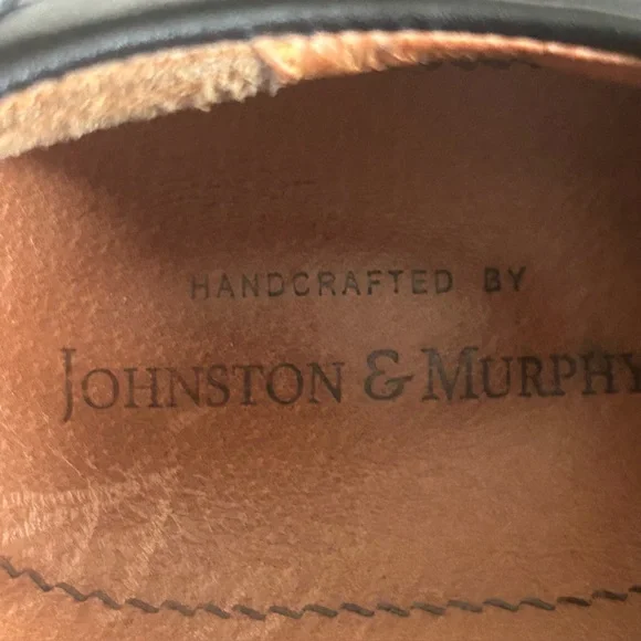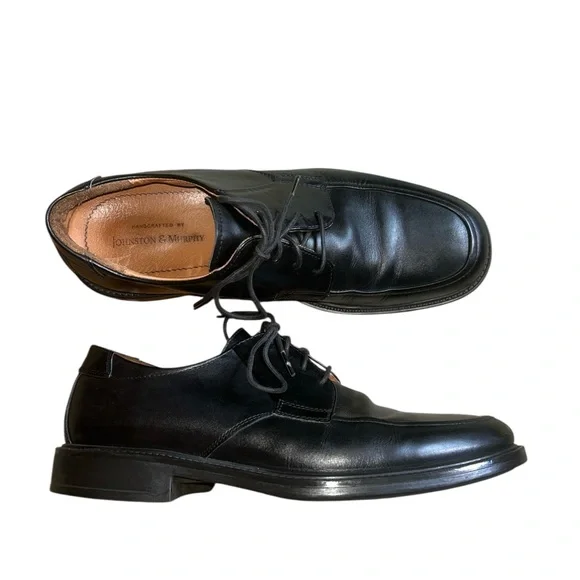 Men´s Johnson & Murphy Lace Up Black Leather Oxford Mens Size 10.5MModel 20-7111 15495A classic that has been re-imagined for comfort in any weather the Stanton Moc Toe oxford from Johnston & MurphyFull-grain waterproof leather upper with seam-sealed construction and padded collar.Advanced construction reduces overall weight, optimized flexibility.Removable memory-foam cushioned insole with sheepskin/moisture-wicking performance fabric cover.High-density rubber sole for shock absorption and durability.Freshly cleaned and polished, these are in very, very good condition with no obvious signs of wear. These store in a smoke/pet free environment. Shipping within one business day.