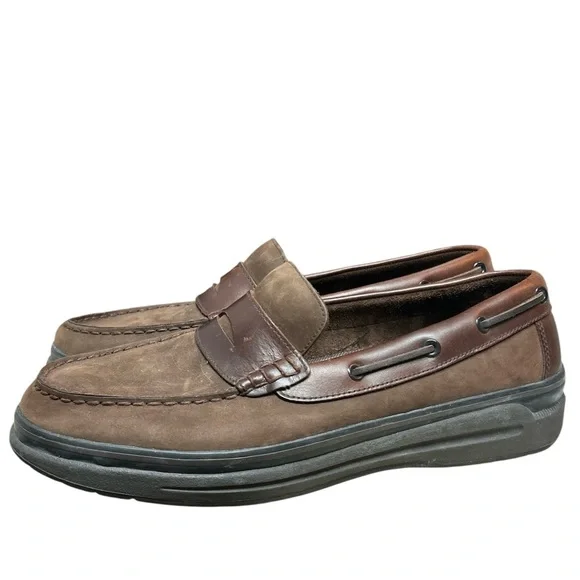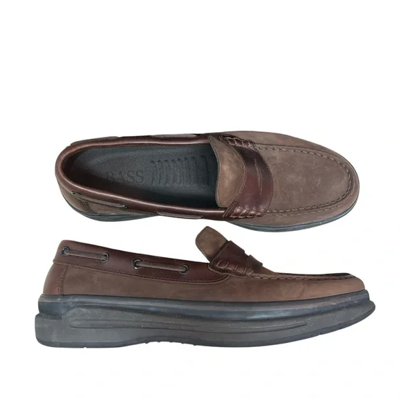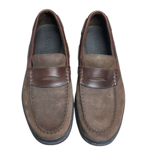 Bass Ketch Penny Loafers Mens Size 12M Brown Nubuck Slip On Casual Shoes PreppyA classic pair of Penny loafers reimagined with hints of a moccasin influence. Super comfortable...