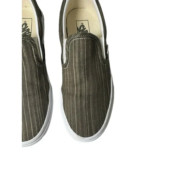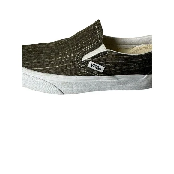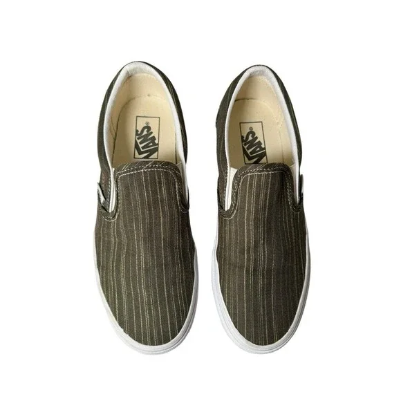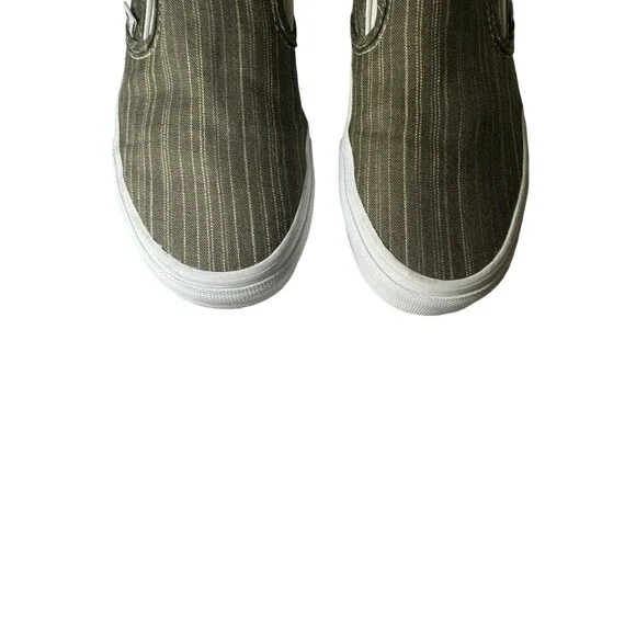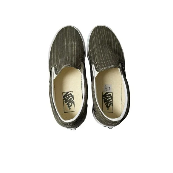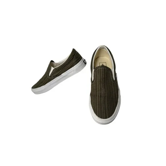 Vans Classic Slip On 751505 Green Striped Suiting Grape Leaf Skate Shoe Size 6.5