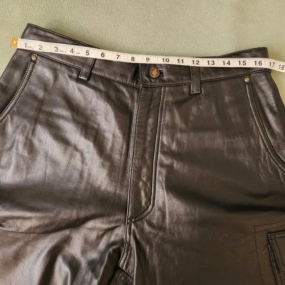 Wilson´s M Julian wide-leg black leather cargo pants.Waist - 32Inseam - 30Thigh - 13Knee - 11Leg Opening - 10Pants are pre-owned and in good condition.