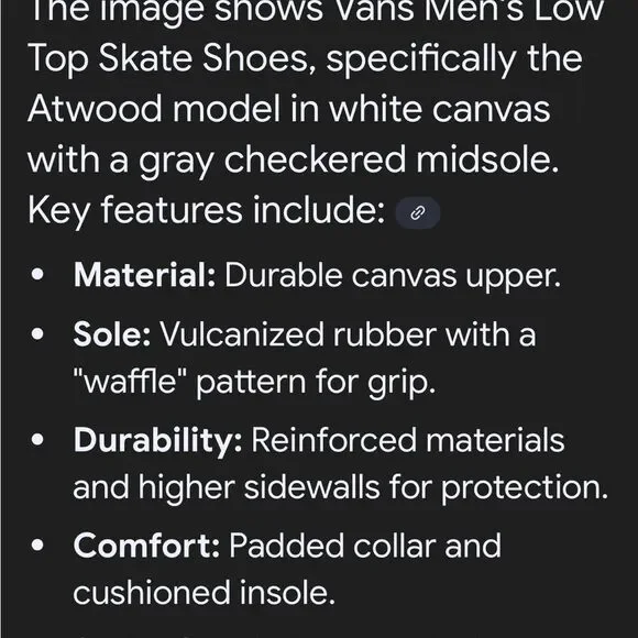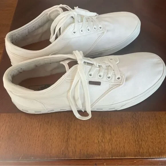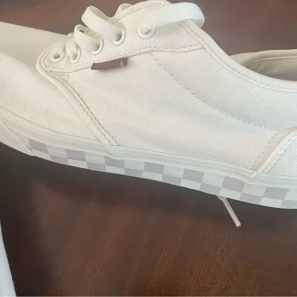 Vans Atwood Low Top Skate White w Gray Checkered Midsole Lace Up Sneaker Size 11