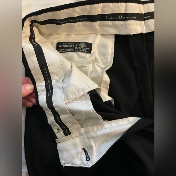 Amazing condition!No size but measured to a 33” waist 29” inseamDouble pleated Rare Christian Dior Monsieur Mens Dress Pants Trousers Black Solid Wool