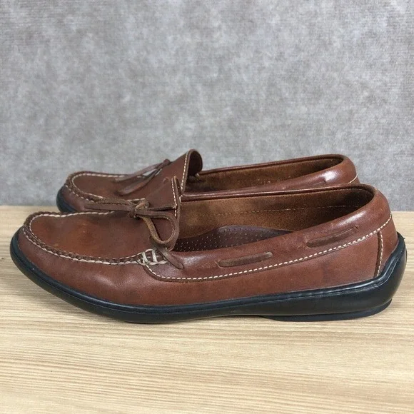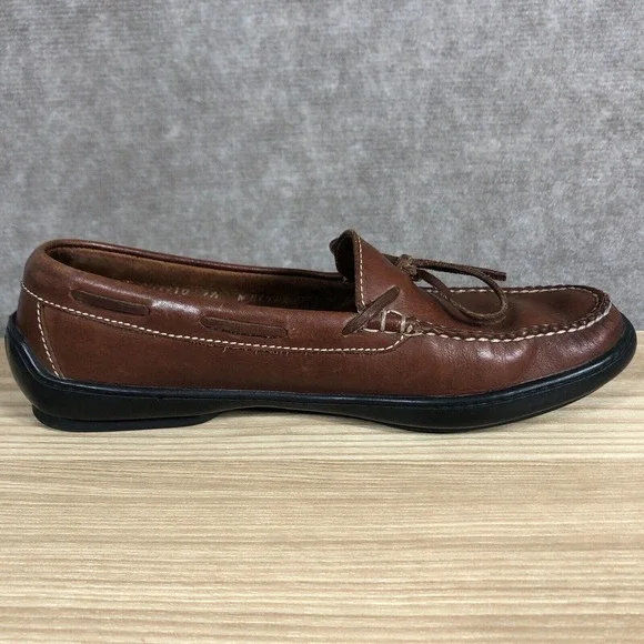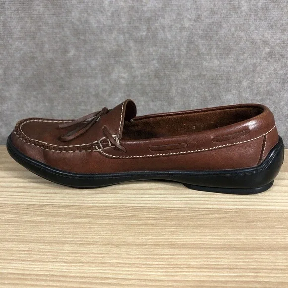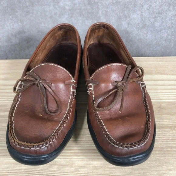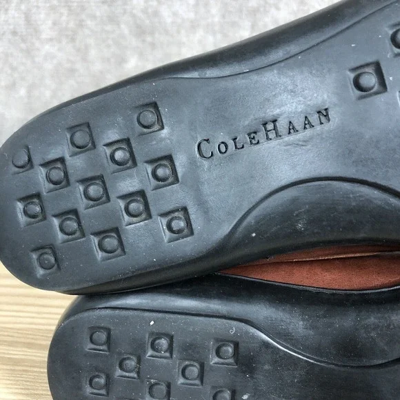 Cole Haan Loafers Mens 9.5 Leather SlipOn Moc Toe Bow Tie Logo Back Casual Shoes