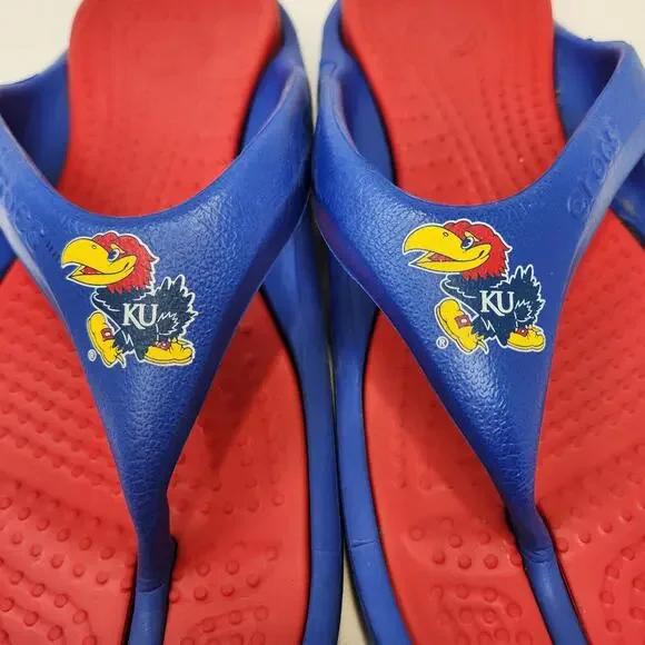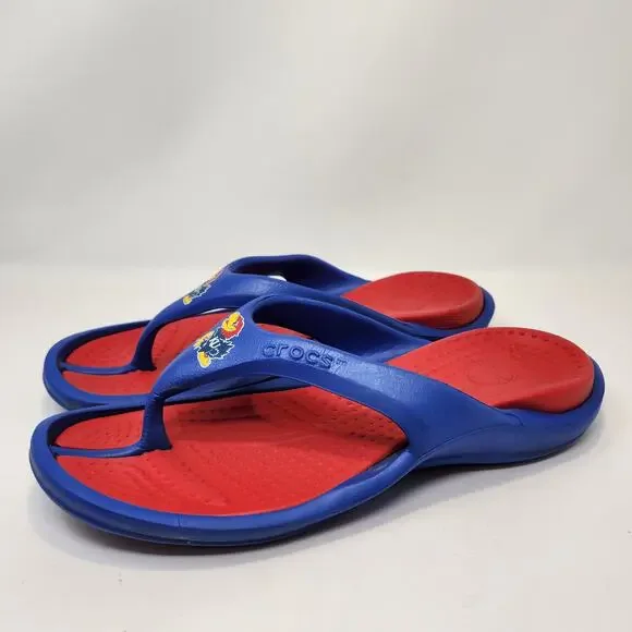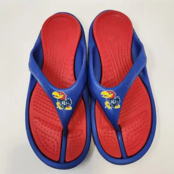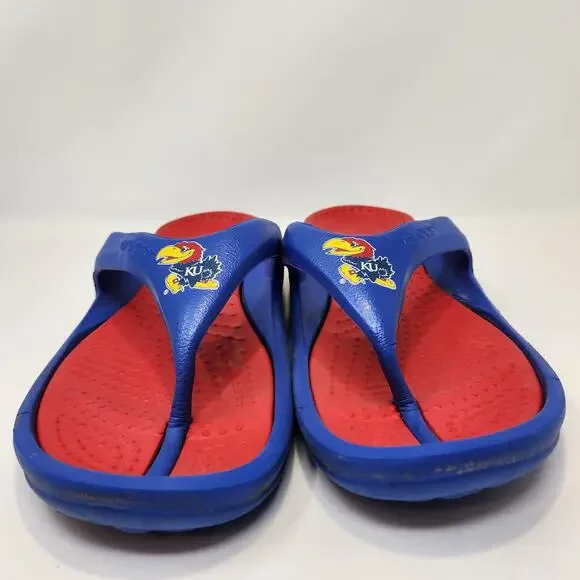Crocs Kansas Jayhawks Flip Flop Thong Sandals Blue Red Men 10 Women 12 Slip On