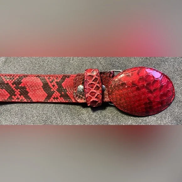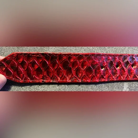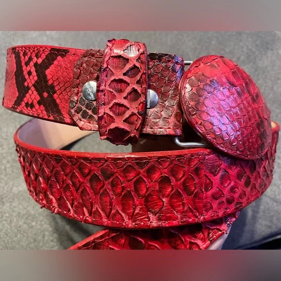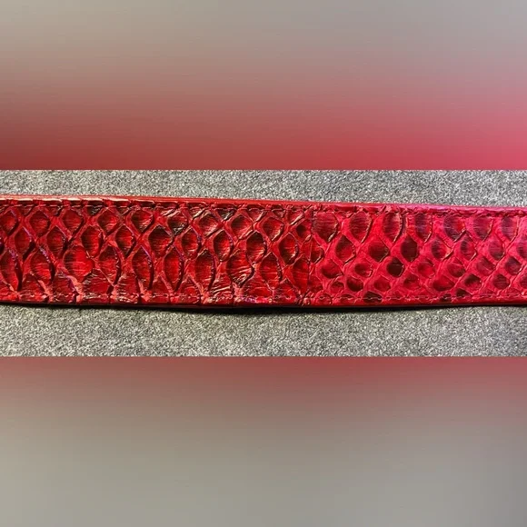 Selling a NEW red python leather beltMEN size 46100% Genuine python skinHandmadeWith an easily removable buckle.For additional pictures or questions, please send a message.Please...