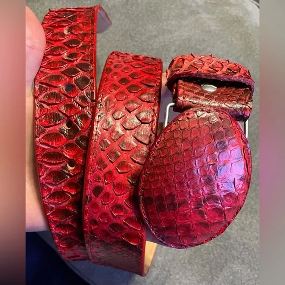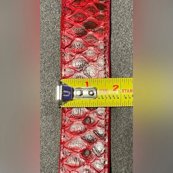 Selling a NEW red python leather beltMEN size 46100% Genuine python skinHandmadeWith an easily removable buckle.For additional pictures or questions, please send a message.Please ask all questions before purchasing because no refunds or returns are accepted.What you see in the pictures is exactly what you will receive.All sales are final.Thanks for looking and check out my other listings.