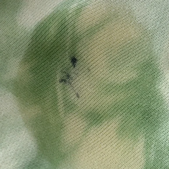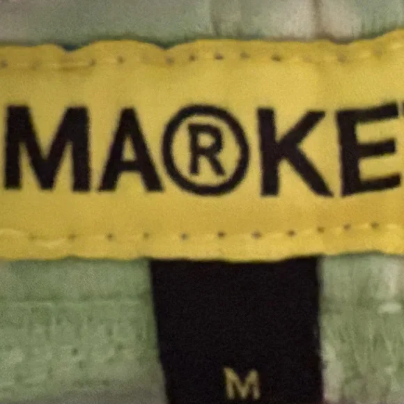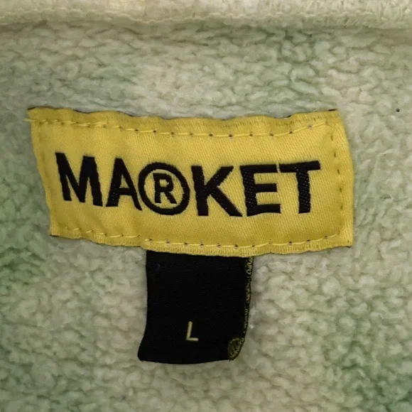 Market is the brainchild of the New York-based designer, Michael Cherman. A streetwear brand that seeks to convey the spirit of New York City’s famous Canal Street through its playful designs. The brands’ instantly recognisable yellow smiley logo can be found across a range of t-shirts, hoodies and headwear, along with plenty of other standout designs.This Market Arc Hawaiian Garden Tye Dye Sweatsuit Set is the perfect addition to any fashion-forward man´s wardrobe. The hoodie and pants are made with high-quality materials that ensure comfort and style. The unique tye-dye design is eye-catching and will make you stand out from the crowd.Hazy tie-dye doubles down on the vintage-fresh appeal of soft cotton sweatpants with a logo blooming in tropical foliage pulling focus on the front. 31" inseam; 9" leg opening; 13 1/2" front rise; 16 1/2" back rise (size Medium) 100% cotton Machine wash, line dry Made in the USA**** THERE IS A SMALL SPOT ON BOTH THE OUTSIDE AND INSIDE OF THE HOOD. I THINK IT SILL COME OUT. PLEASE SEE PICS.***