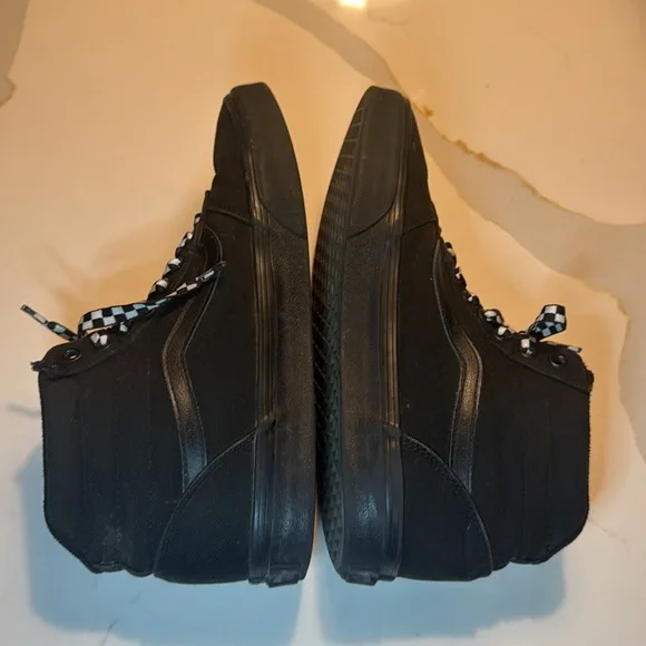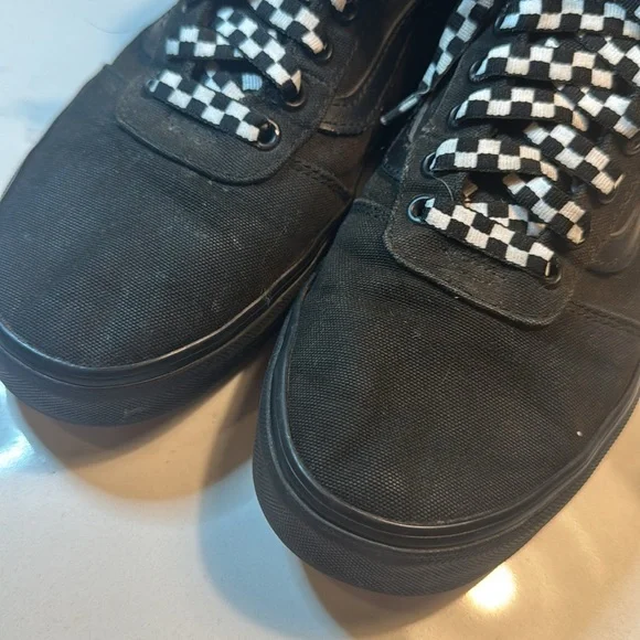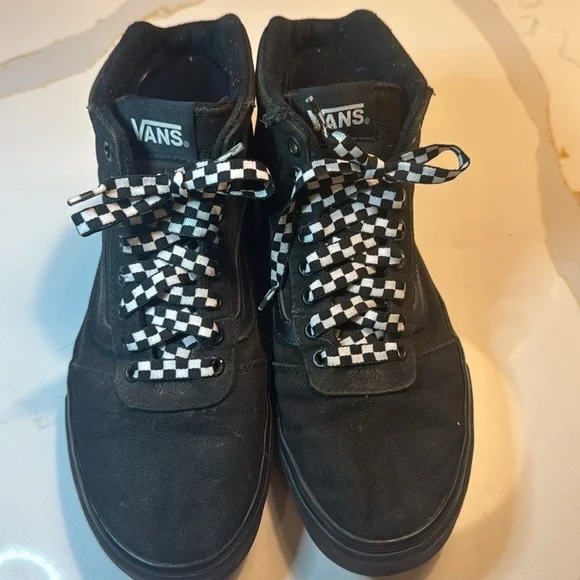 Vans Black Canvas High-Tops with Checkered Laces