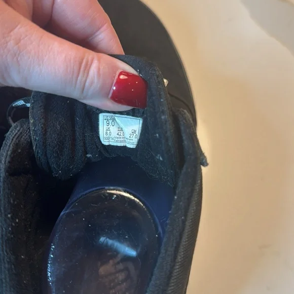 Classic Vans high-top sneakers in black. Features iconic checkered laces. Ideal for everyday style.