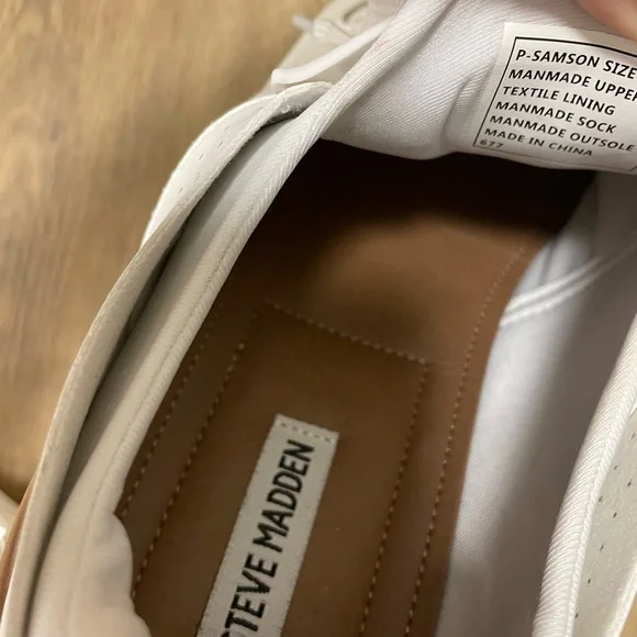 Experience the perfect blend of style and comfort with these Steve Madden sneakers. Featuring a perforated leather upper for breathability and a sleek low-top design, these shoes are ideal for any casual occasion. The white and brown color scheme adds a touch of versatility to your wardrobe.Gently PrelovedMinimal signs of wear. Look for the photos. Steve Madden Samson Super nice shoes, perfect for summertime Men’s 11.5. smoke free home -bundles are always welcome (ask any questions or if I have certain sizes and I will help you)-most reasonable offers accepted! -same day shipping or next day (depending on when an items is purchased) -Thank you for stopping by my closet!