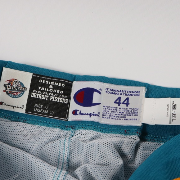 Follow me on Instagram: vogue_squaredVintage 1996-1997 Champion Detroit Pistons Basketball Tearaway PantsPantsThese are player issued pants purchased from a recent sale that the Detroit Pistons put on to the public.The size is 44Measurements are:40 inch inseam56 inch overall length18 inch waist lying flatTealPolyesterFrom the 1996-1997 SeasonCheck out my other items in my store!ChampionBin