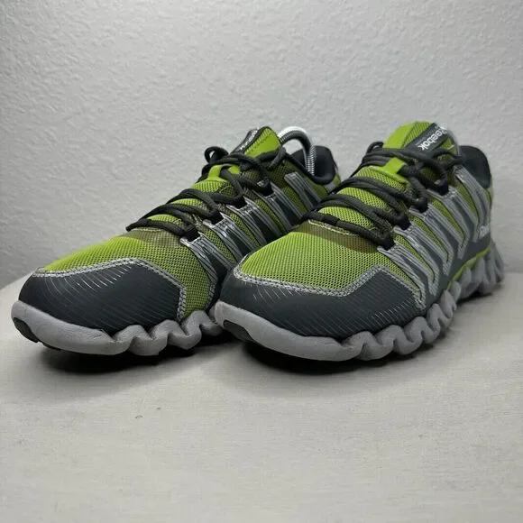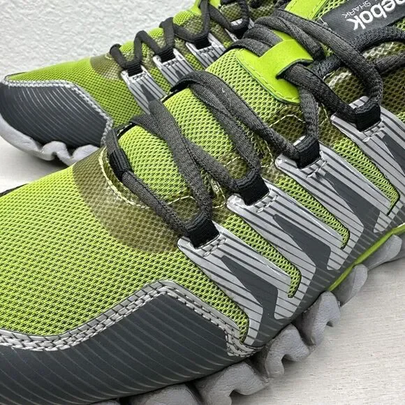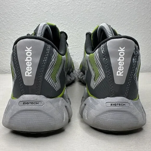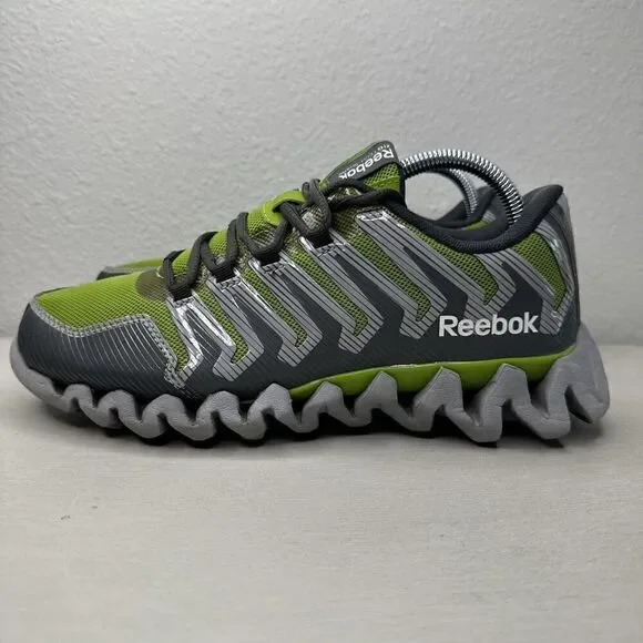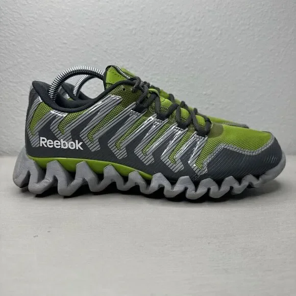 Elevate your active and casual wear with these Reebok Zig Tech Shark running sneakers. Designed with a low top shoe shaft style and lace-up closure, these sneakers provide a comfortable and secure fit for gym and training activities, walking, cross-training, and running.Crafted with a synthetic upper material, rubber outsole material, and foam insole material, these sneakers boast cushioned, breathable, and comfortable features that will keep you feeling fresh and supported during any activity. With a stylish gray and green color combination, these Reebok Zig Tech Shark sneakers are perfect for any occasion and are a must-have for any sneaker enthusiast.Pre owned. Size 7.9-0009