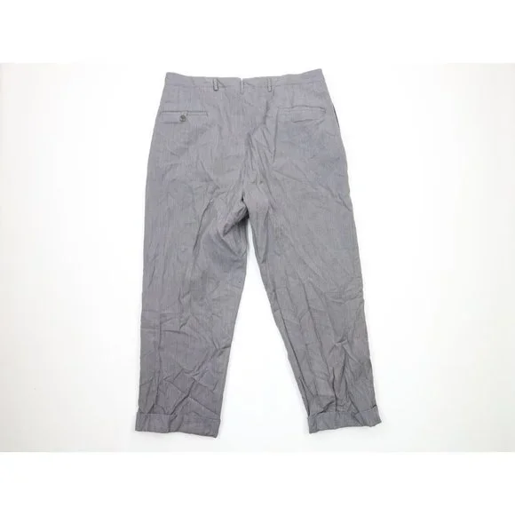 Vintage 30s Streetwear 34x28 Distressed Wool Pleated Cuffed Wide Leg Pants USA