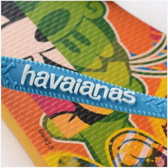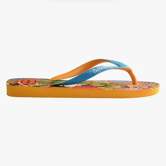 Goofy is popping up in a whole new way in the Disney Stylish flip flop! Featuring colorful pop art versions of Goofy on the sole, two-tone blue and orange straps, and a white Havaianas logo.Size: Men’s USA 9/10 (BRAZIL 41/42)Color: Orange CitrusBrand New w/ Tag Attached.