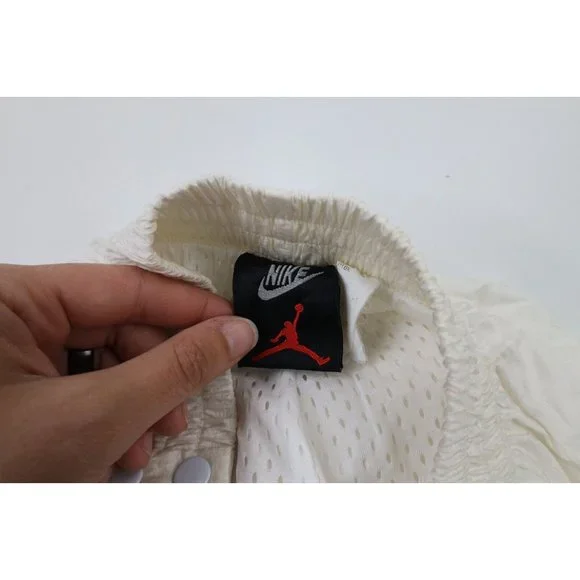 Vtg 90s Nike Air Jordan Mens L Spell Out Jumpman Lined Wide Leg Tearaway PantsMens Pants10.5 inch leg openMens size LargeMeasurements are:15 inches across the waist laid flat30 inch inseam42.5 inches from top to bottomWhiteNylonCheck out my other items in my store!PR733