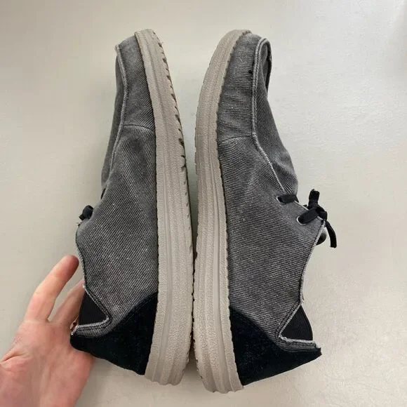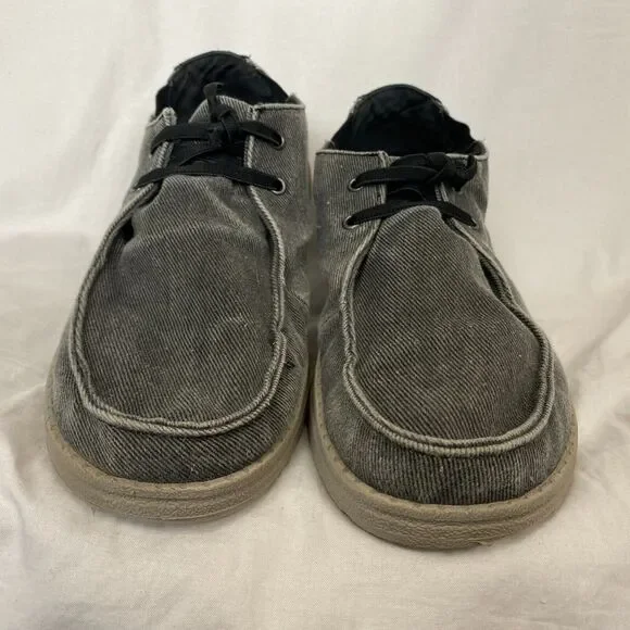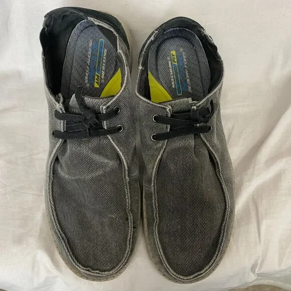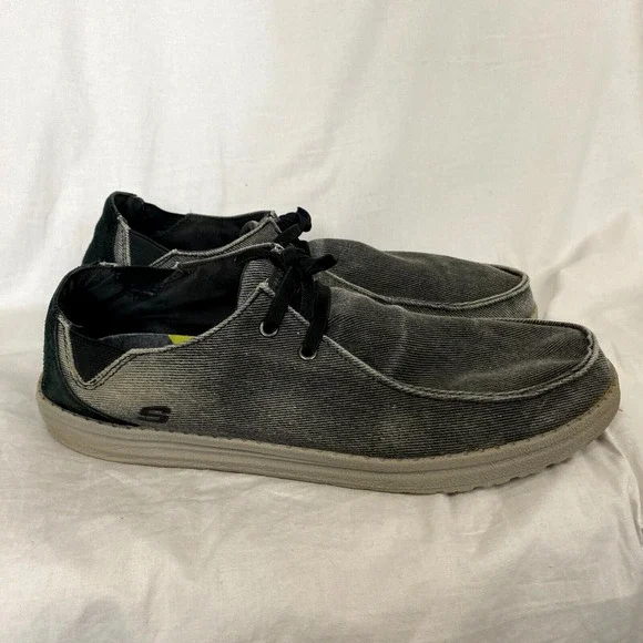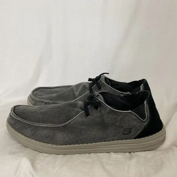 Skechers Mens 13 Melson-Raymon Canvas Slip On Shoes Gray Moccasin Goga Mat ArchDistressed / faded look from factory.Clean, and in good used condition with no major flaws. Please see photos for detail.