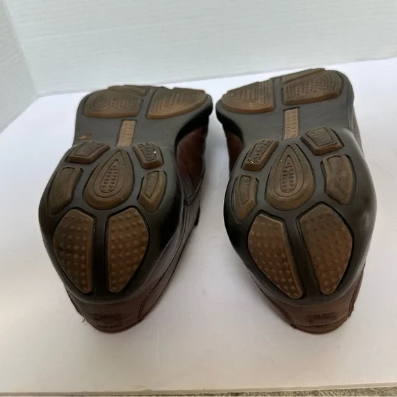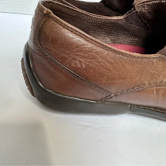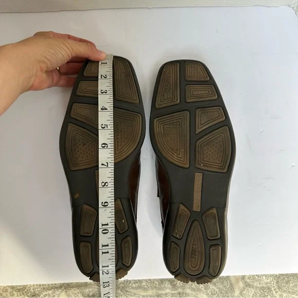 Step out in style with these sleek brown leather slip-on shoes. Perfect for any occasion, they offer both comfort and elegance. Great condition. Please see photos for details and...