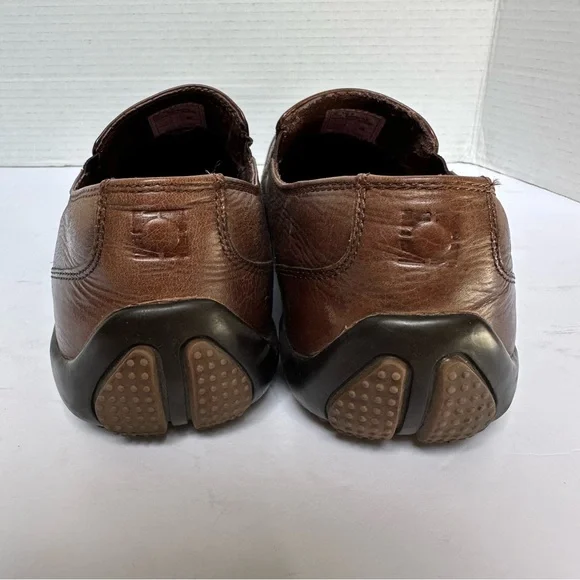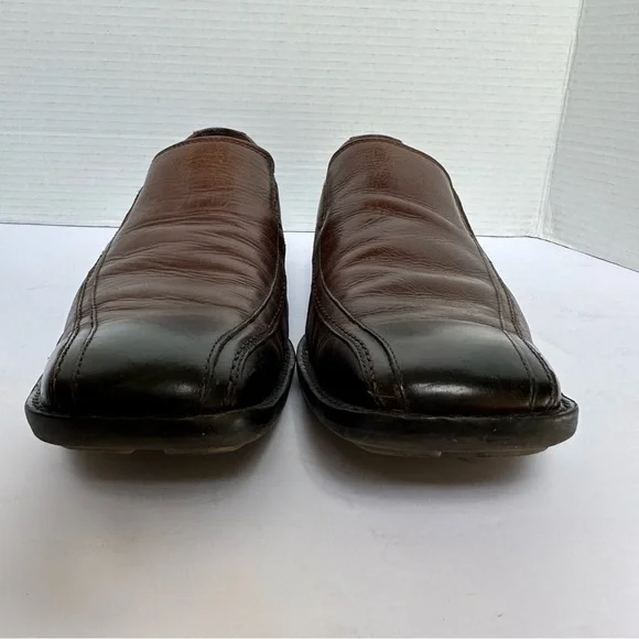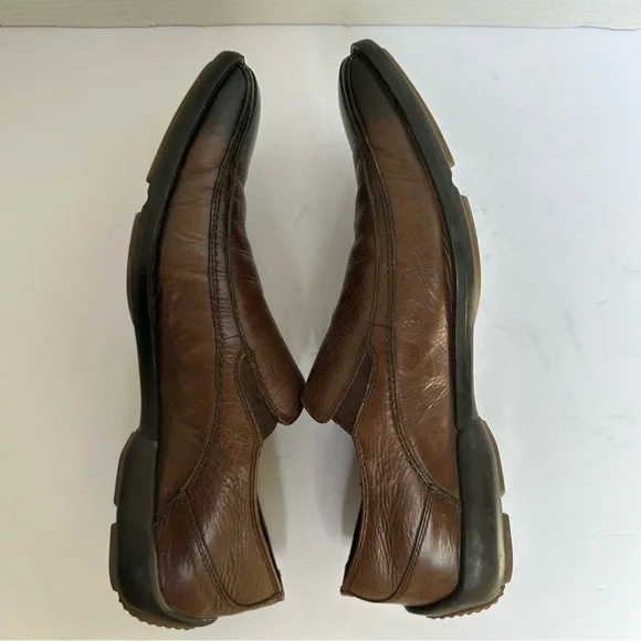 Step out in style with these sleek brown leather slip-on shoes. Perfect for any occasion, they offer both comfort and elegance. Great condition. Please see photos for details and measurements. Comes with box.Leather upperSize: 10.5Made in China