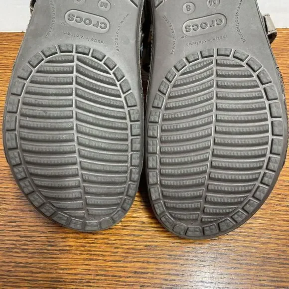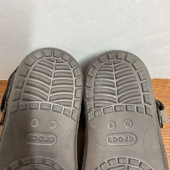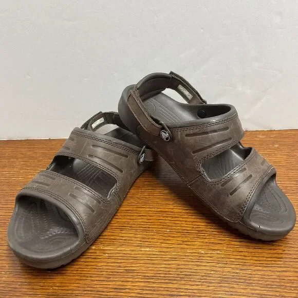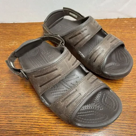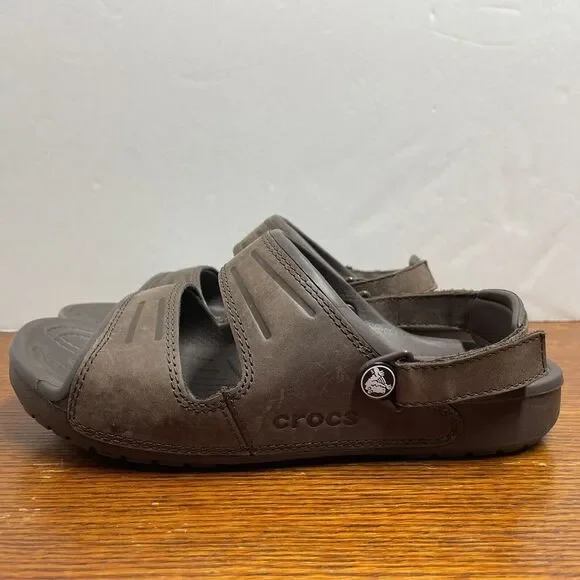 Elevate your casual comfort with these Crocs Swiftwater Leather Sandals. Imagine sinking your feet into the molded footbed, feeling the gentle support with every step. The adjustable hook-and-loop strap ensures a secure, custom fit, while the stylish leather accents add a touch of rugged sophistication to the classic Crocs design. The lightweight construction makes them perfect for all-day wear, whether you´re strolling along the beach, running errands around town, or relaxing by the pool. These sandals are ideal for weekend getaways, casual outings, or simply enjoying a laid-back day at home.Keywords: Crocs, Swiftwater, Leather Sandals, Mens Sandals, Adjustable Strap, Brown Sandals, Casual Sandals, Comfort Sandals, Size 12, Crocs Sandals, Leather, Slip On, Summer Shoes