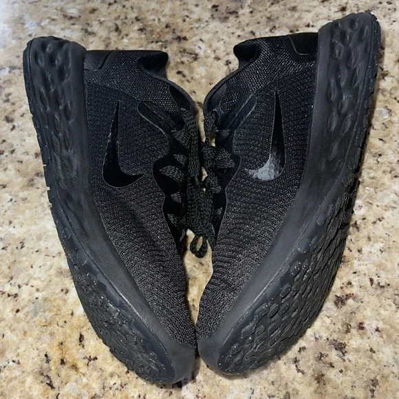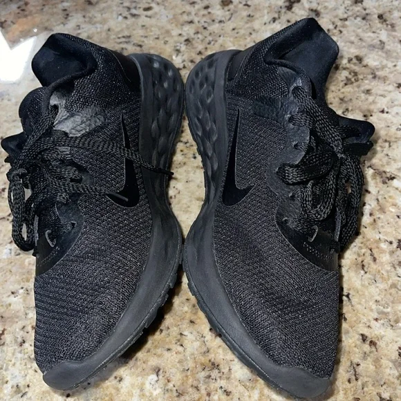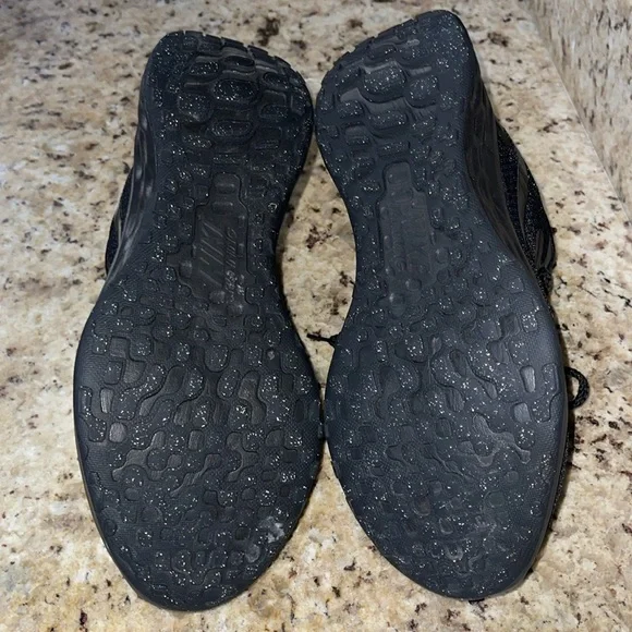 Stylish black athletic sneakers with lace-up design. Perfect for casual wear or workouts.In great condition
