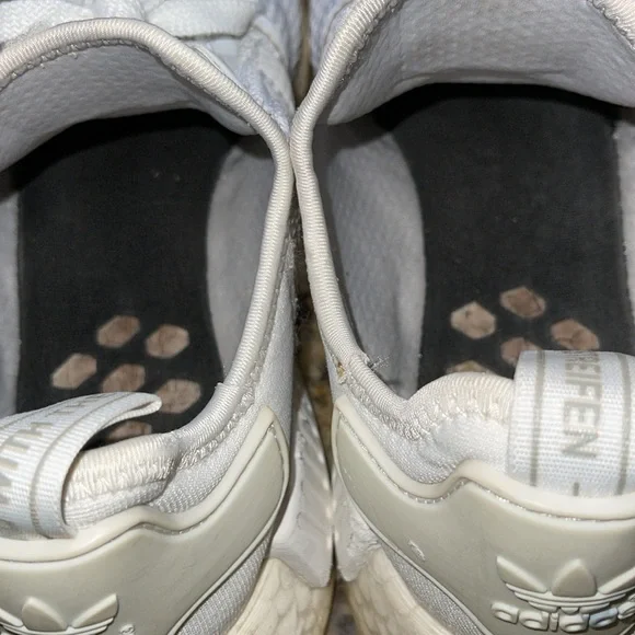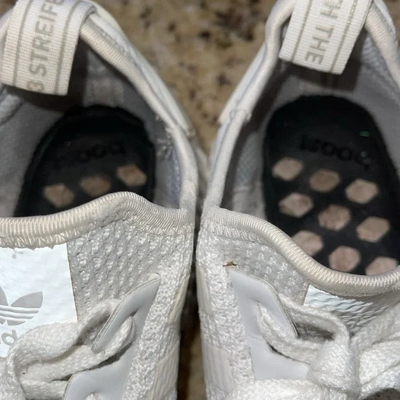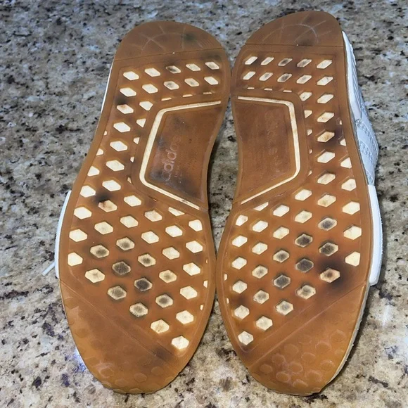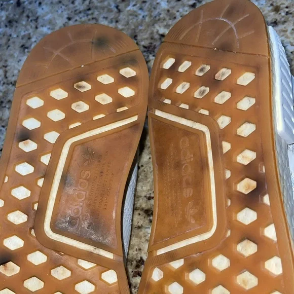 Has wear on the midsoles as shown in the fourth picture Has staining on the bottom of the shoes