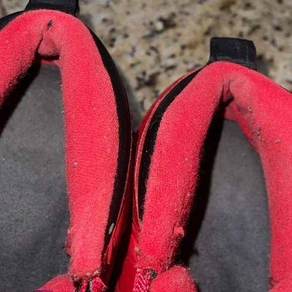 Has scuffsHas wear on the bottom of the shoes Has some pilling/fuzzies and a small rip as shown in the last pictureHas signs of wear as shownNo box