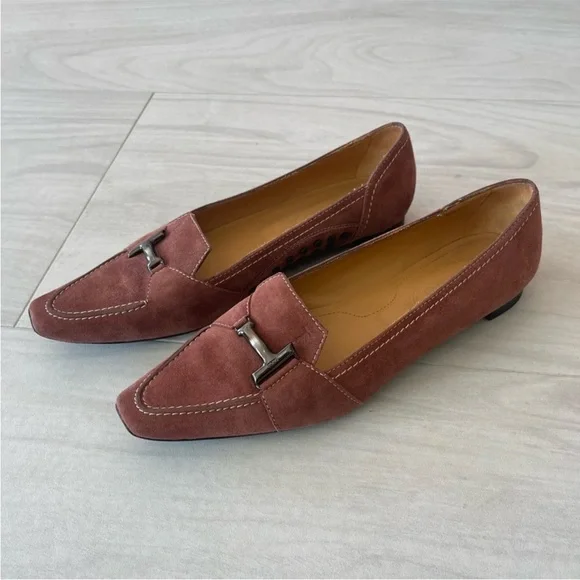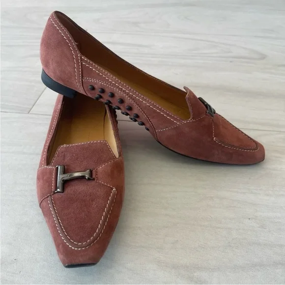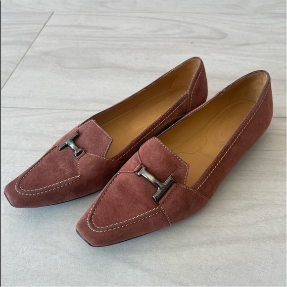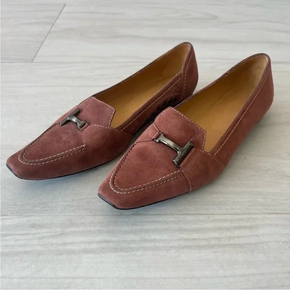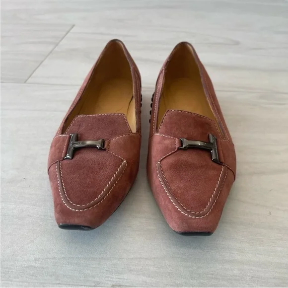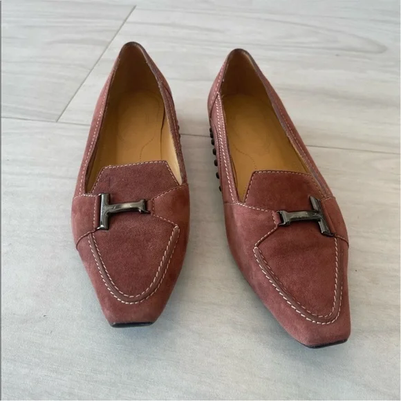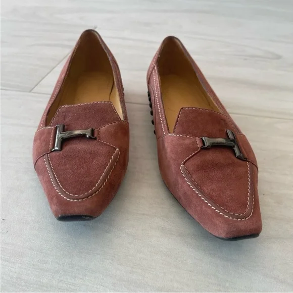 Tod’s Vintage dusty pink suede flats / loafers. Size 36.5!