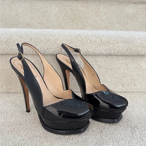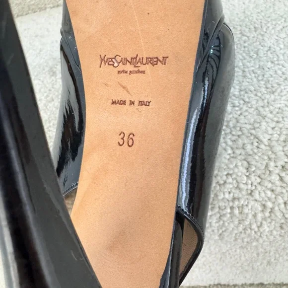 Yves Saint Laurent Black Patent Leather Slingback Heels size 36