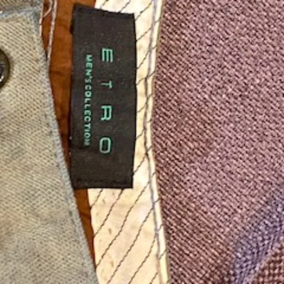 If you know anything about ETRO, you would know that it is a very unique and expensive designer.These pants are super expensive and very versatile. They are a cotton blend, light green with hues of blue. Size 34x32