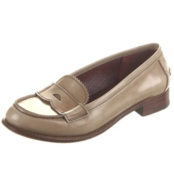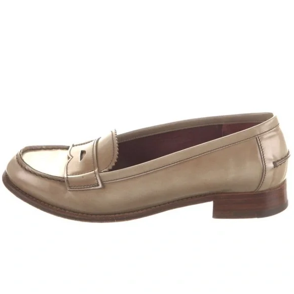 Adorable Prada loafers, size 7.5 in good vintage condition! Light fading and a few minor scuffs throughout, with gentle wear at the soles (see pics). A gorgeous, classic pair with lots of life left. purchased from the real real so they’ve already been authenticated, i just don’t find myself reaching for them. Someone scoop them! #pradaloafers #designerloafers #luxuryfootwear #pradaresale #neutralstyle #italianfashion #quietluxury #vintageprada