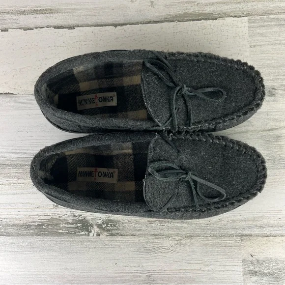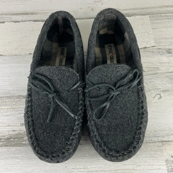 Minnetonka Men’s Rubber Bottom Slippers Size 10 Charcoal Gray