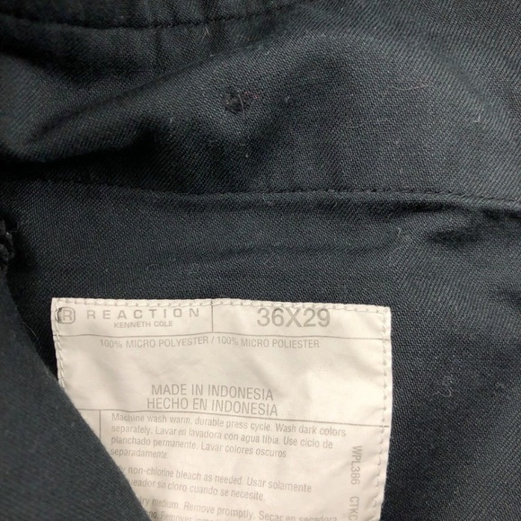 You are Buying a Used Great Condition Kenneth Cole Reaction Men´s Black Dress Pants Size 36x29. * Missing button on back pocketStyle:Flat Front Dress PantsBottoms Size (Men´s):36x29Color:BlackSize Type:RegularBrand:Kenneth Cole ReactionMaterial:Polyester BlendInseam:29From a Pet and Smoke Free Home SKU CU32