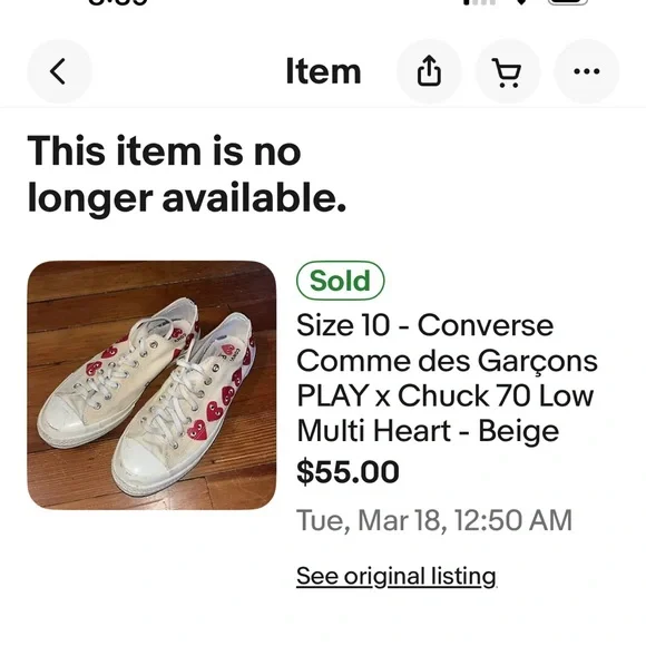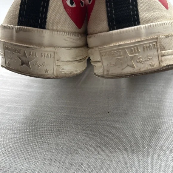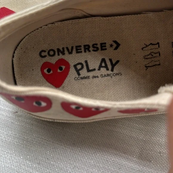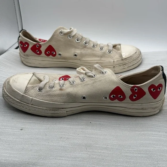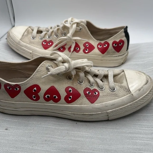 Classic Converse All Star with a durable brown sole. Iconic design for everyday wear.Converse play size 10 hearts with eyes design we need cleaning they are highly collectible