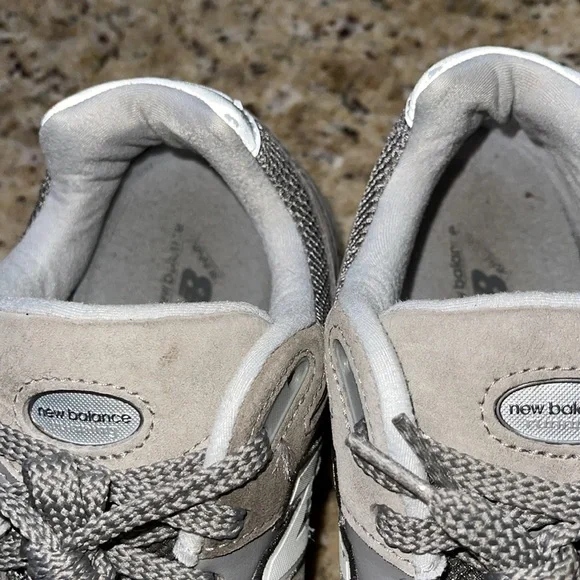 Stylish gray sneakers by New Balance. Comfortable and versatile.Has wear on the logos