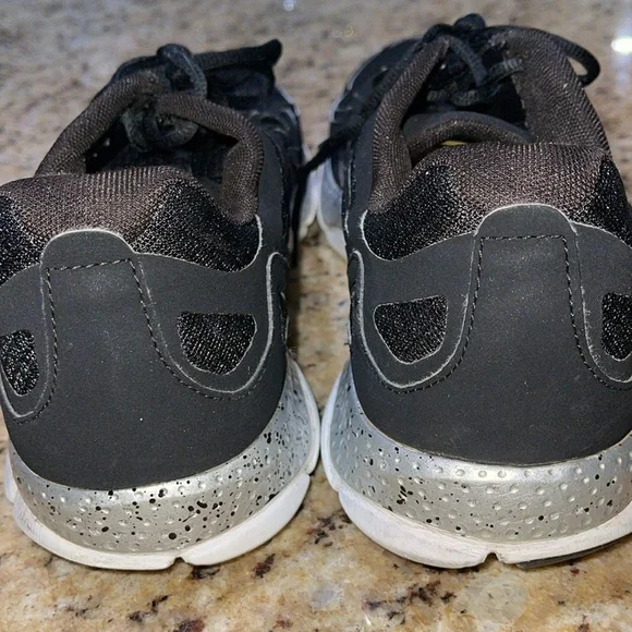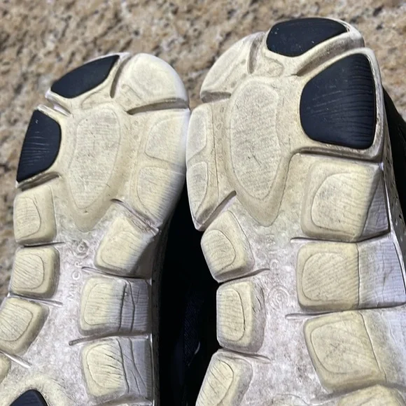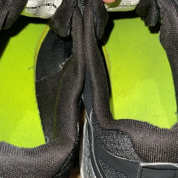 Has some wear on the shoe in the left side of the picture as shown in the second pictureHas wear on the bottom of the shoes