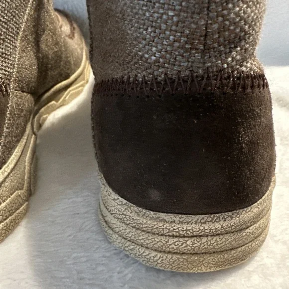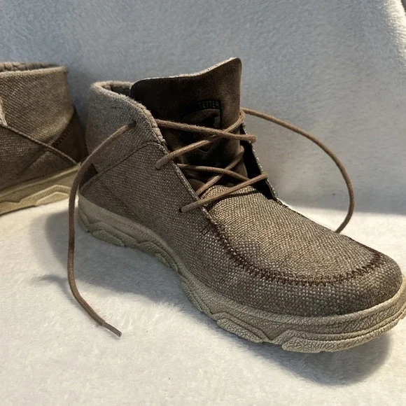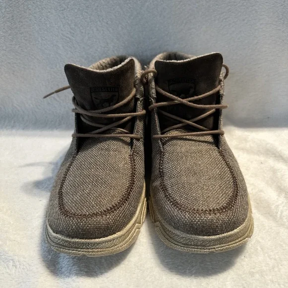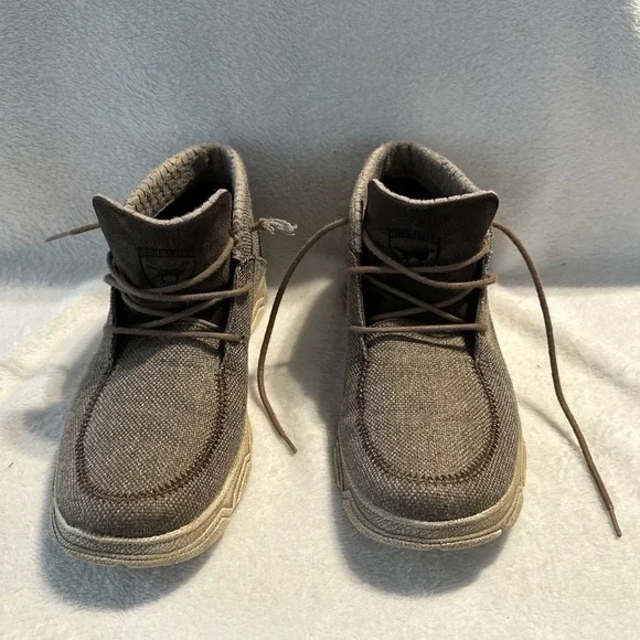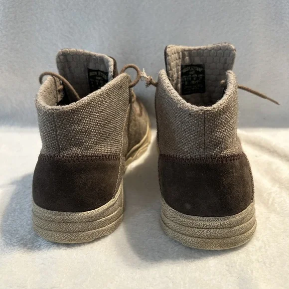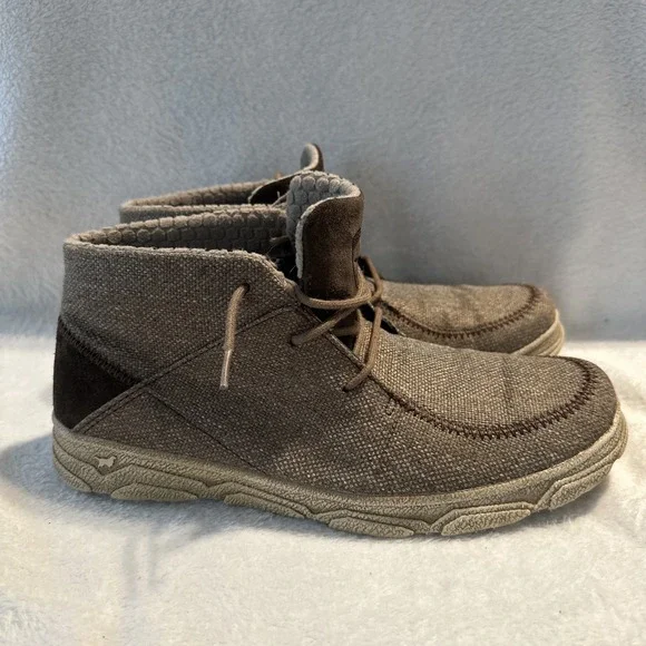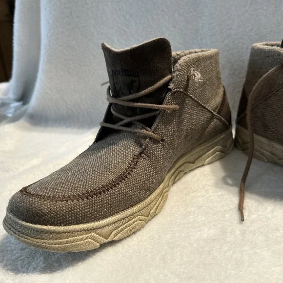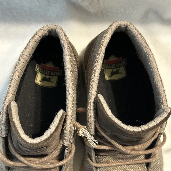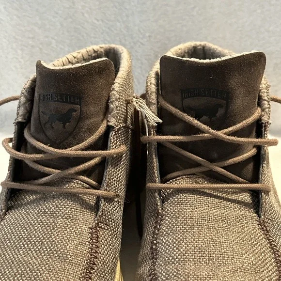 The Irish Setter Red Wing Hunt Traveler Chukka Ankle Boots in Men´s Size 9 are brown boots designed for travel, activewear, and casual occasions. Featuring a round toe and lace-up closure, these boots have a rubber outsole for performance and comfort. The design includes the Irish Setter logo accents and a solid pattern suitable for outdoor activities like hunting, camping, or everyday wear. Made with canvas upper material and foam insole, these boots are durable and stylish for various adventures.These shoes are in overall good condition. The laces will need to be replaced and there´s a tiny scuff mark on one of the shoes. Please see all photos for details.