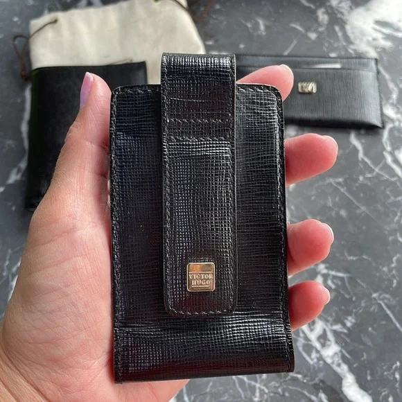 Black Leather Wallet Set includes 3 pieces. Crafted with premium materials, this set offers both elegance and functionality. Perfect for the modern man.