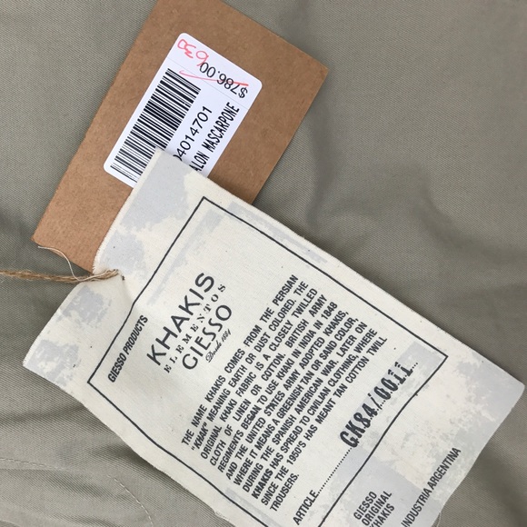 New with tags men´s dress pants or casual pants. Super soft. Laying flat the waist measures 15.5 inches across. The opening at bottom of leg is 7 inches across and the inseam is 32.75 inches. Made in Argentina cotton linen blend. Original retail price was $786. Pantaloon Pantalon