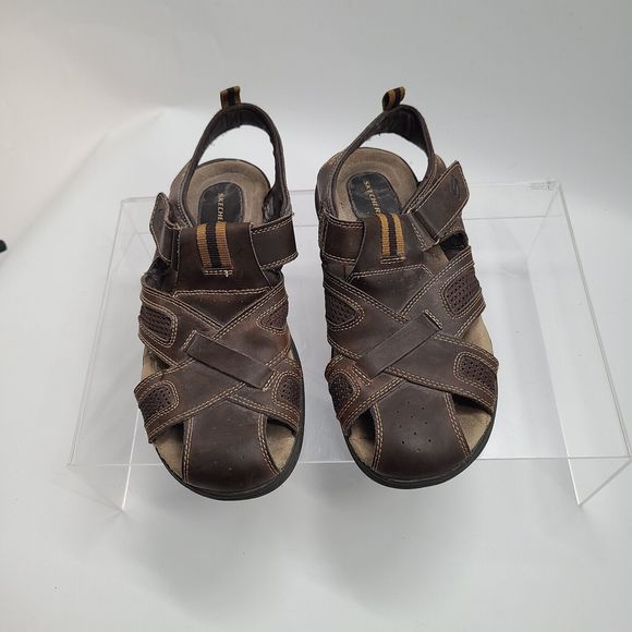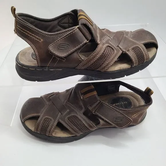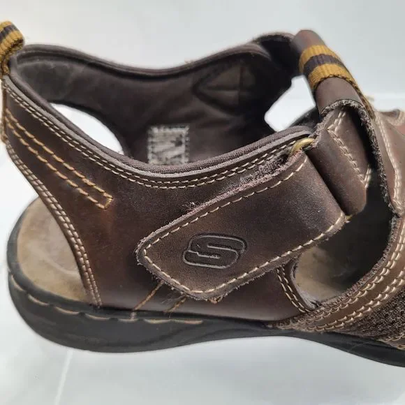 Skechers Brown Leather Fisherman Sandal Padded Insole 63067 Men’s US Sz 11