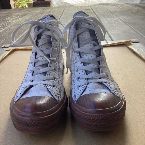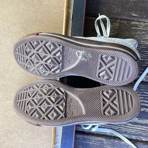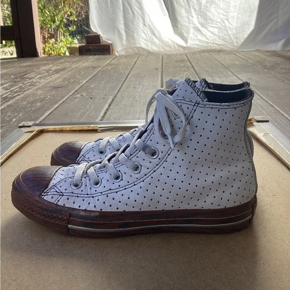 Converse white and brown casual high top dots and faux wood souls, size 5