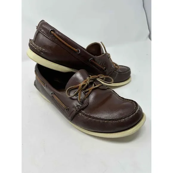 Sperry Mens Brown Leather Lace-Up Boat Shoes Size 9