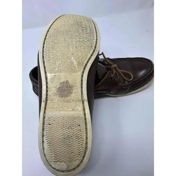 Sperry Mens Brown Leather Lace-Up Boat Shoes Size 9Brand: SperryType: ShoesStyle: LoaferSize: 9 MediumColor: BrownMaterial: LeatherCondition: GoodThese Sperry boat shoes for men...